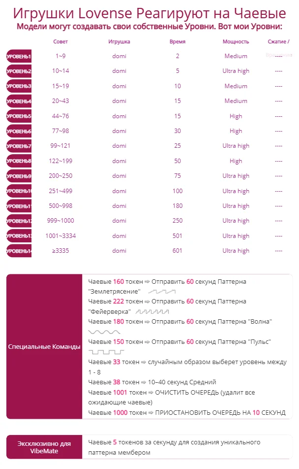 Ahegao, Tevepata, Erotikus tánc, Fenekelés, Villantás, Félmeztelen, Lábfétis, Kutyapóz, Ujjazás, Masszás, Magassarkú, Mocskos beszéd, Dildó vagy vibrátor, Kézimunka, Lovaglás, Felcsúszott szoknya, Sztriptíz, Twerk, Lábmunka